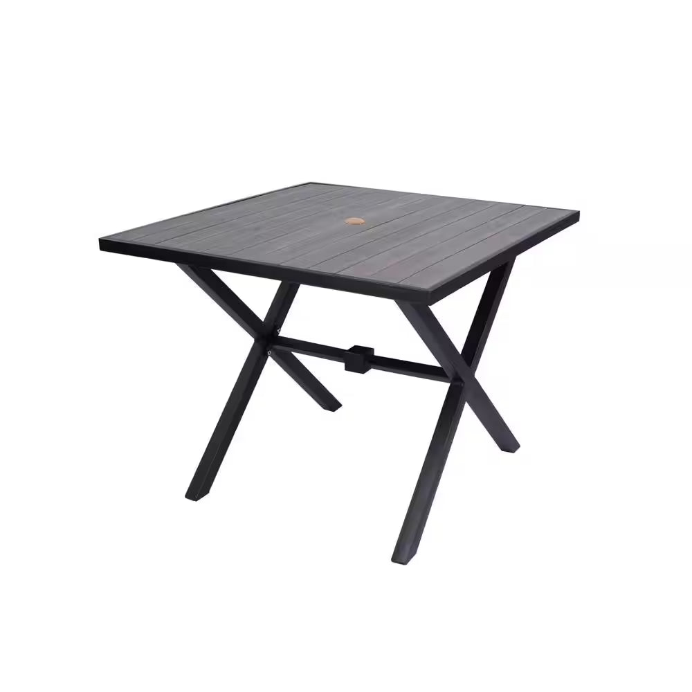 Enhance your outdoor space with this Hampton Bay Laguna Point square dining table—built with a durable powder-coated steel frame and stylish faux-wood slat top. Its 35″ square surface and classic design make it a versatile addition to patios, decks, or gardens.